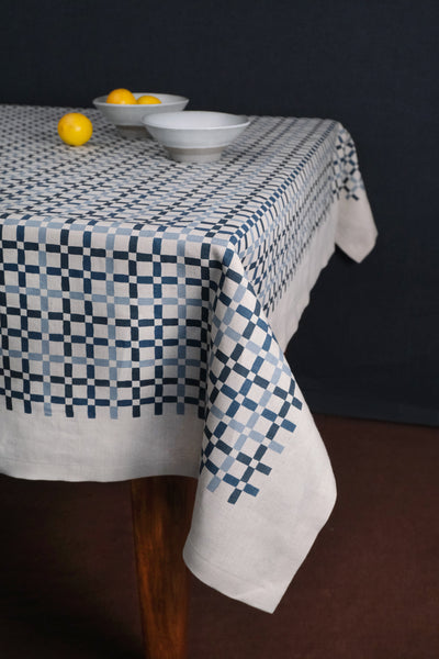 The Harwich Tablecloth brings rhythmic color to your dining table. Hand printed on 100% linen, this intricate piece will easily become a staple for fine dining occasions or a sweet dinner with friends.